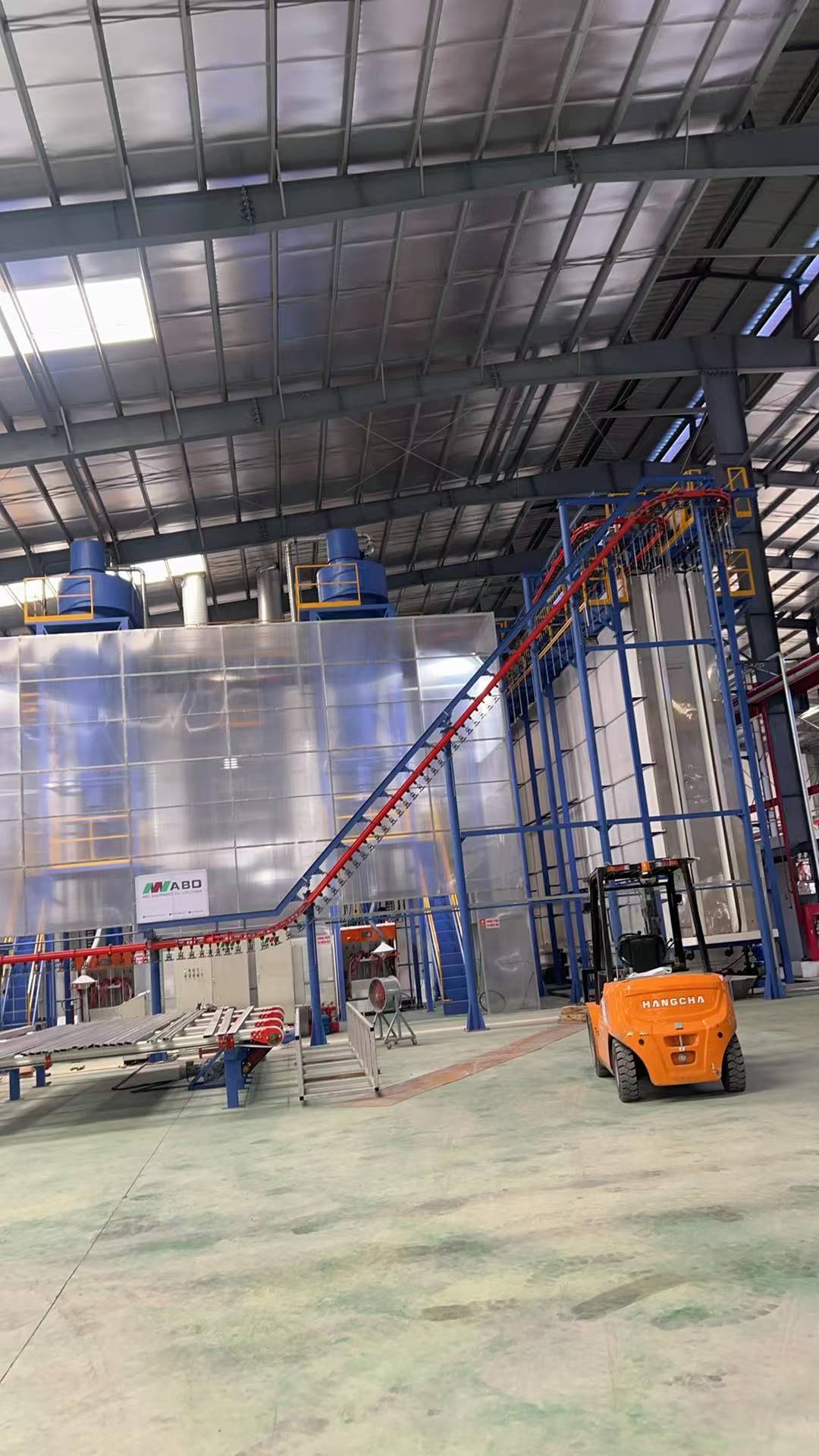 2) 기술 설명:부하, 사전 처리, 건조, 분말 코팅, 경화, 출하.